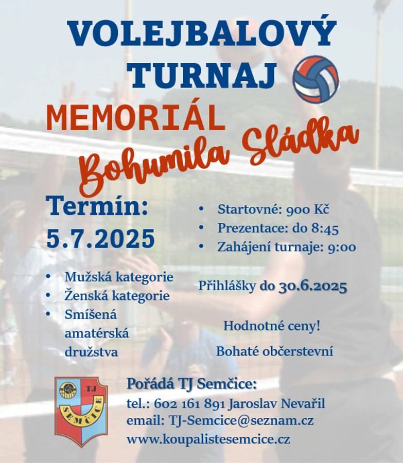 Volejbalový turnaj v Semčicích probíhá více než 50 let, později byl turnaj pojmenován po volejbalovém hráči a legendě místního sportovního celku panu Bohumilu Sládkovi (*11.12.1936, + 19.11.1983). Zasloužil se nejen o rozvoj volejbalu v Semčicích, ale také o širší sportovní dění v naší obci.