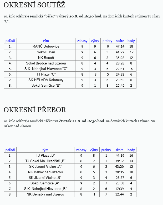 NOHEJBAL - podzimní část okresního přeboru i okresní soutěže začínají naše týmy doma
