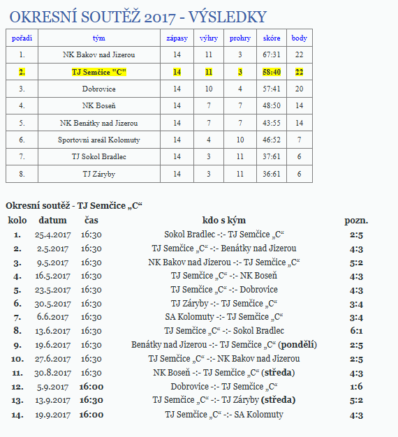 Okresní soutěž 2017 a výsledky