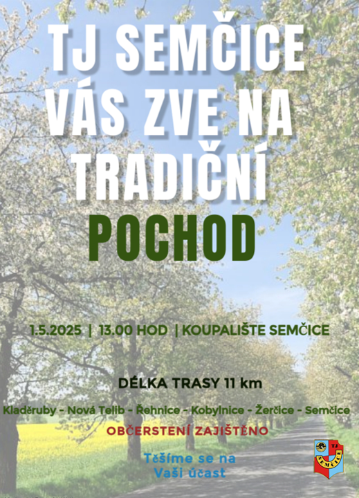 TJ Semčice Vás zve na Tradiční pochod – 1. května