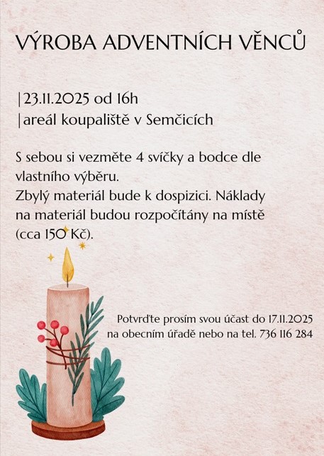 na obecním úřadě nebo na tel. 736 116 284